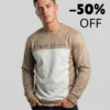 Sporty grey sweatshirt featuring bold “Celtics” branding, Nike swoosh, and black sleeve piping. Perfect for casual wear and layering.