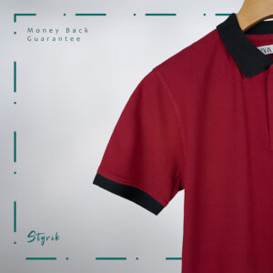 Deep Red Polo T-Shirt with black accents and a classic buttoned placket. Perfect for casual and smart-casual occasions, offering style and comfort.